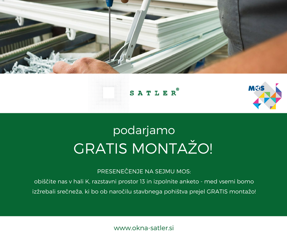Med vsemi, ki nas boste obiskali na našem razstavnem prostoru in izpolnili anketo, izžrebali nekoga, ki bo prejel GRATIS MONTAŽO stavbnega pohištva.